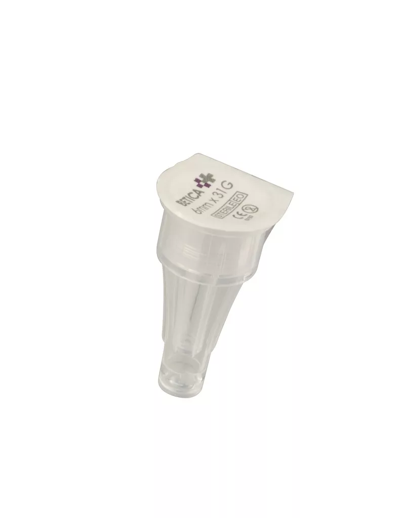 Betere doorstroming van de insuline. Het is belangrijk dat de insuline zo soepel mogelijk doorstroomt bij de injectie. Ook draagt dit bij aan meer injectiecomfort en een kortere injectieduur. Daarom hebben Betica-pennaalden een (extra) dunne naaldwand. Zo is de binnenste diameter zo groot mogelijk in verhouding tot de dikte van de pennaald. Een injectie met zo min mogelijk pijn is wel zo prettig. We schenken veel aandacht aan injectiecomfort. Daarnaast is het belangrijk om huidschade zoveel mogelijk te beperken. Om dat voor elkaar te krijgen, doen we het volgende: We slijpen Betica-pennaalden vanuit drie verschillende hoeken. Een scherpe naald zorgt namelijk voor een goede penetratie van de huid. We voorzien Betica-pennaalden met een speciale dubbele siliconenlaag. Die zorgt ervoor dat de naald soepel de huid in- en uitgaat. Ten slotte polijsten we de pennaalden elektrolytisch voor een extra gladde canule. Klik hier voor de combineerbaarheid met diverse merken insulinepennen.