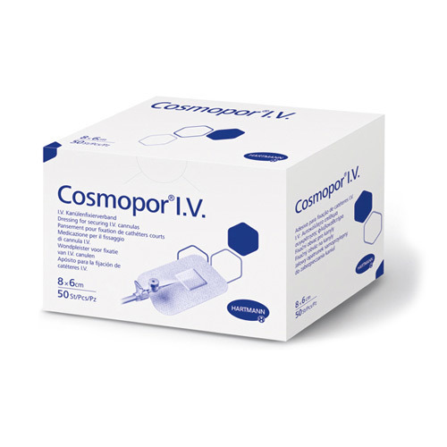 I.V.-verband voor veilige fixatie van canules met hoog comfort voor de patiënt. Zelfklevend I.V.-verband voor de fixatie van canules, gemaakt van een zacht non-woven dragermateriaal, met een speciaal gecoat, niet-verklevend wondkussen; extra, apart kussen als bescherming tegen drukpunten door de verblijfscanule; huidvriendelijk door een hypoallergene synthetische kleefstof. Voor de steriele verzorging van de punctieplaats en tegelijkertijd een veilige fixatie van intraveneuze canules.