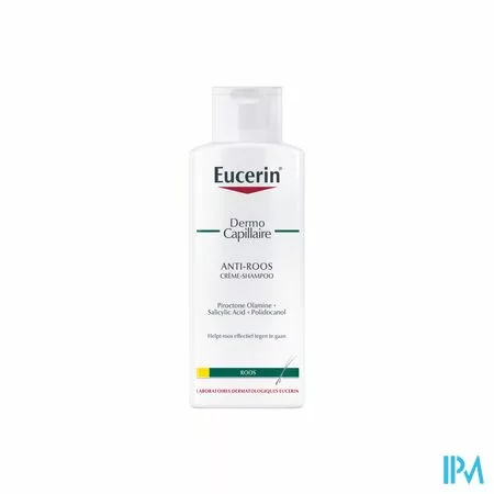 Eucerin DermoCapillaire ANTI-ROOS CRÈME SHAMPOO is speciaal ontwikkeld voor droge roos. Het reinigt mild hoofdhuid en haar van witte schilfering en plakken en vermindert effectief jeuk vanaf het eerste gebruik. Terwijl de speciale ingrediënten het haar een een gezonde, soepele glans geven.