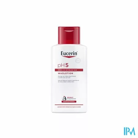Eucerin pH5 Waslotion is een dagdagelijkse gezichts- en lichaamsreiniging die vrij is van alkalische zeep. Extra milde oppervlakte-actieve stoffen zorgen ervoor dat de droge, gevoelige huid zacht maar effectief wordt gereinigd. Het unieke Eucerin pH Balance System geeft de reiniging de optimale pH-waarde om de natuurlijke weerstand van de huid te beschermen, de veerkracht te behouden en uitdroging te voorkomen. Het is ook geschikt voor baby's en kinderen.