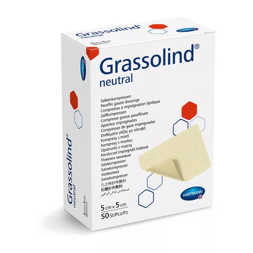 Zalfkompressen zonder werkzame stoffen met open gaasstructuur. Zalfkompres zonder werkzame stoffen, bestaande uit een wijdmazig lucht en secreet doorlatend katoenen weefsel, geïmpregneerd met een neutrale zalfmassa; de dikke zalflaag spoelt niet weg, ook niet bij sterke exsudatie; makkelijk op maat te knippen; ook effectief bij langdurig gebruik; bevat geen sensibiliserende stoffen noch allergenen. De zalfmassa bestaat uit: witte vaseline, diglycerol esters van mono- en dicarbonvetzuren, synthetische was. Voor algemene wondbehandeling, in het bijzonder om wondranden en -oppervlakken zacht en soepel te houden, bijvoorbeeld bij grote schaaf- of snijwonden, bij brand- of schroeiwonden, in de plastische en cosmetische chirurgie, bij nagelextracties, phimosisoperaties enz.; voor het afdekken van de donorhuid bij huidtransplantaties en ter fixatie van de huidtransplantaten; eveneens ideaal in de dermatologie en voor patiënten met een gevoelige huid of overgevoeligheid voor geneesmiddelen.