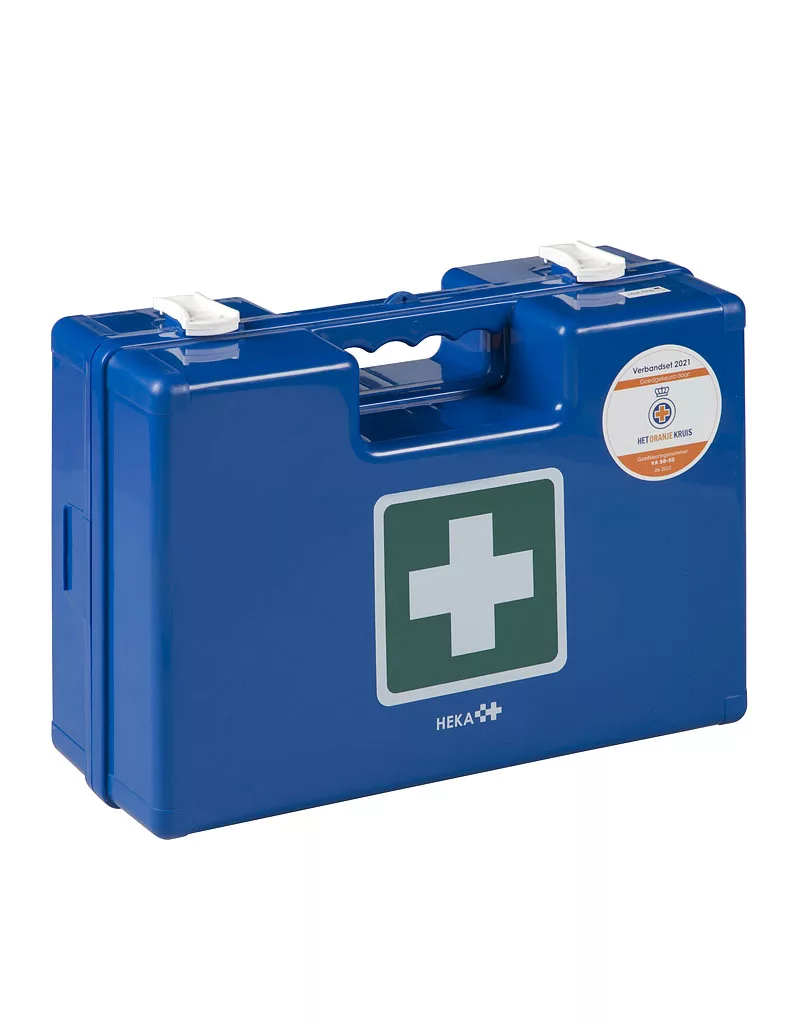 De Heka Medimulti HACCP BHV 2021 is samengesteld volgens de nieuwste verbandrichtlijnen 2021 en bekroond met de goedkeuring van Het Oranje Kruis (Goedkeuringsnummer: VA 58-50).