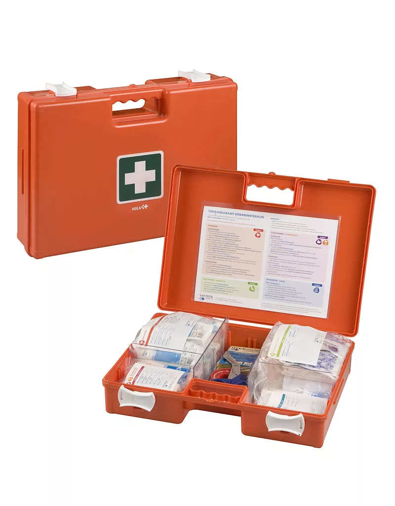 De Heka multi flex organizer is een toolpack, ABS, met een flexibele indeling. De Heka multi flex organizer is een gebruikersvriendelijke, overzichtelijke en complete BHV verbandkoffer, waarbij in één oogopslag duidelijk is welke producten men, afhankelijk van het letsel, moet gebruiken. Ook zit er een toepassingskaart, welke aangeeft hoe te handelen bij welke wond, in de verbandkoffer. In de verbandkoffer bevinden zich de volgende modules: bloedingen, schaaf- en brandwonden, verstuikingen/kneuzingen, reinigen en instrument/overig.