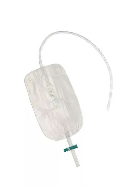 Dagzak/beenzak met kruiskraan voor meerdaags gebruik Maximaal 7 dagen te gebruiken 3 compartimenten om klotsen tegen te gaan Non-woven achterzijde Kruiskraan Maatverdeling indicatief weergegeven Slang (50 cm) in te korten naar gewenste lengte Losse connectoren bijgeleverd Voorzien van koppelstuk Terugslagventiel PVC en PE