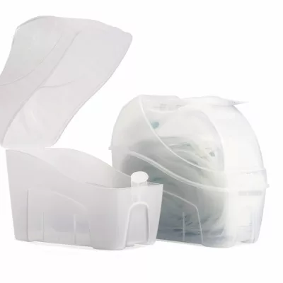 Elke dispenser presenteert de zakjes één voor één, waardoor ze gemakkelijk langs de perforatie afgescheurd kunnen worden.De dispensers zijn eenvoudig te openen met behulp van een kliksysteem waardoor de labels op de zakjes duidelijk leesbaar zijn.
