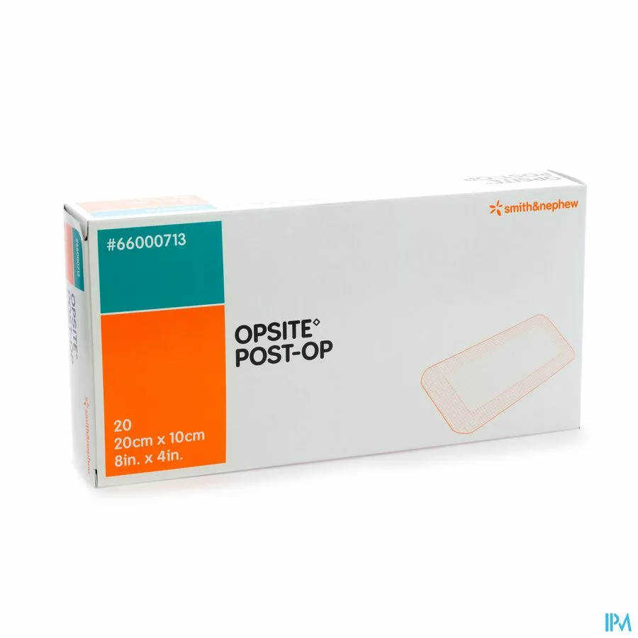 Opsite Post-Op is een uniek, steriel, waterdicht, ademend, transparant, post-operatief verband dat de voordelen combineert van een hoge vochtdoorlaatbare folie met een niet verklevend sterk absorberend wondkussen. Het is uiterst geschikt voor post-operatieve en dagelijkse kleine wonden zoals snij- en schaafwonden, gehechte wonden en scheurwonden.Het soepele en aanpasbare verband is afwasbaar en heeft afgeronde hoeken