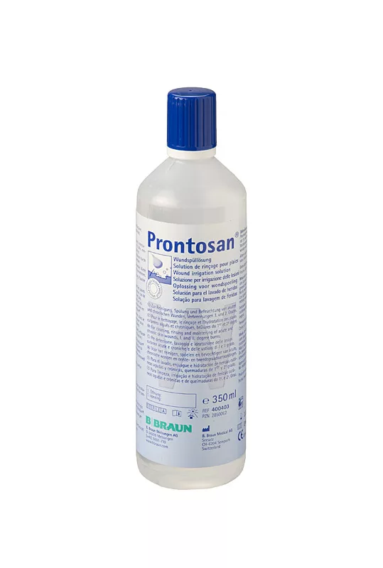 Prontosan is een wondspoeling voor het reinigen, spoelen en bevochtigen van acute en chronische wonden. Prontosan is effectief in het verwijderen van biofilm en kosteneffectief. - Kant en klaar voor gebruik - Optimale voorbereiding van het wondbed - Steriel; houdbaar tot acht weken na opening - Kan worden opgewarmd tot lichaamstemperatuur - Geen risico op verdere besmetting van wonden - Te combineren met alle wondverbanden - Effectief tegen geur.