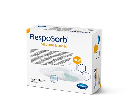 RespoSorb Silicone Border is een zelfklevend, superabsorberend kompres met siliconenlaag voor de behandeling van matig tot sterk exsuderende, chronische en acute wonden. RespoSorb Silicone Border is een steriel, zelfklevend superabsorberend verband voor eenmalig gebruik met een siliconen wondcontactlaag voor langdurige behandeling van beschadigde huid, acute en chronische wonden, met matige tot hoge exsudaatniveaus. Het wordt alleen gebruikt bij volwassenen, door professionals in de gezondheidszorg in klinische of thuiszorgomgevingen en kan worden gecombineerd met lokale antiseptica en secundaire verbandmiddelen.