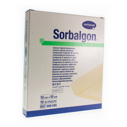 Kompressen om te tamponneren en tamponnadestroken uit calciumalginaatvezels zonder werkzame stoffen, die bij contact met natriumzouten van bloed en secreet tot een hydrofiele niet-verklevende gel worden omgezet en de wond opvullen; daardoor ontstaat een nauwer wondcontact en een microklimaat dat gunstig is voor de wondgenezing; kiemen worden uit de wond opgenomen en in de gelstructuur ingesloten. Voor de verzorging van alle uitwendige wonden, maar in het bijzonder voor de behandeling van bloedende en secernerende wonden, daar de gelvorming het wondgenezingsproces bevordert zoals o.a. bij ulcus cruris venosum, decubitus, abcessen, furunkels, brandwonden en moeilijk te verzorgen wonden in de traumatologie en tumorchirurgie; voor diepe wonden en fistelgangen is Sorbalgon T beschikbaar.