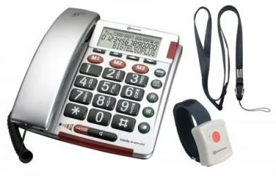 • Telefoon met grote toetsen, programmeerbare noodnummers en handig alarmtoestel