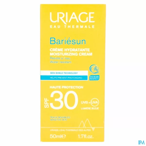 Deze crème beschermt in hoge mate tegen UVA, UVB en vrije radicalen dankzij een uiterst efficiënt filtersysteem. Bovendien voorkomt ze dat de huid uitdroogt. De lichte, niet-vette, aangenaam geparfumeerde textuur is telkens weer een plezier om aan te brengen. Deze uiterst veilige verzorging wordt uitstekend verdragen en trekt snel in. In de Bariésun formules werd Thermaal Water van Uriage verwerkt om de schadelijke gevolgen van de zon tegen te gaan. De huidbarrière wordt versterkt en het DNA is beschermd tegen aantasting door UV. Gloednieuw laatste generatie filtercomplex met hoge UV-bescherming. Bewezen fotostabiliteit en brede bescherming in het UVB/UVA-gebied. Deze crème met Aquaspongines en Thermaal Water van Uriage beschermt intensief tegen uitdroging.