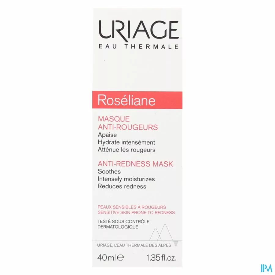 Indicaties: Herstelt en versterkt de huidbarrière Dit masker is rijk aan Thermaal Water van Uriage dat over hydraterende en kalmerende eigenschappen beschikt, en aan Cerasterol-2F dat de huidbarrière langdurig herstelt. Daardoor wordt de huid onmiddellijk en langdurig gehydrateerd. Versterkt de vaatwand Extracten van Ginseng en rode algen versterken de bloedvatwand, zodat bloedvaatjes minder zichtbaar zijn aan het huidoppervlak. Herstelt en versterkt de immuunbarrière Een combinatie van TLR2-Regul complex en SK5R-complex (Specific Kallikrein-5 Regulator), een nieuw patent van de Laboratoires Dermatologiques d'Uriage, houdt kallikreïne 5 binnen de perken. Dit is een protease-enzym dat verantwoordelijk is voor ontsteking en vaatproblemen. Daardoor heeft dit masker een uitgesproken kalmerend effect op de huid.
